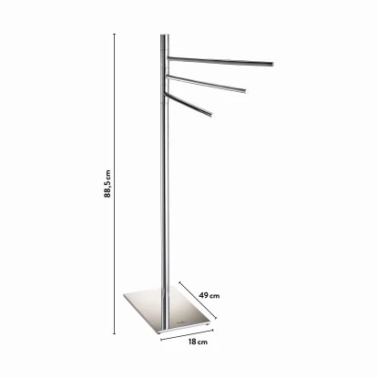 Durch seine Höhe von 68 cm kannst du auch große Dusch- und Badetücher über die Stangen legen. Sie haben eine Länge von jeweils 26 cm. Der stabile Handtuchhalter besteht aus verchromtem Edelstahl und kann mit einem Gewicht von bis zu 2,5 kg belastet werden. Mit festem Stand: Der Fuß hat die Maße 4 cm x 26 cm (B x T) und passt somit auch in kleine Nischen.