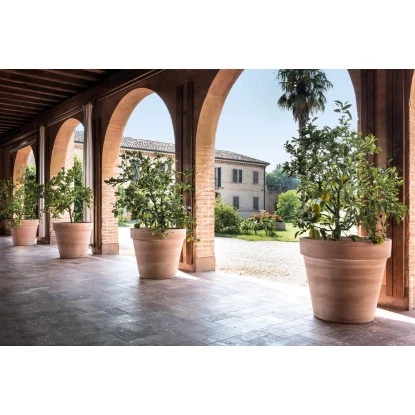 Der Deroma Pflanztopf Magno besticht durch sein zeitloses Design. Die essenzielle Form des Pflanztopfes ist genau auf die Bedürfnisse der Pflanze abgestimmt. Er ist aus UV-beständigem, winterfestem Terrakotta gefertigt und ist somit ideal für den Außenbereich geeignet.
