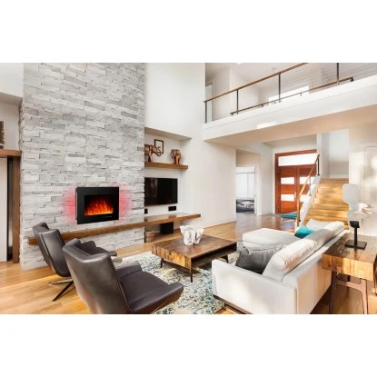 Der El Fuego Elektrokamin Aarau II zur Wandmontage oder freistehend überzeugt stets durch seine sehr elegante stilsichere Optik, die einfache Bedienung und die große Heizkraft (zweistufig einstellbar), welche sofort nach dem Einschalten einen angenehmen warmen Luftstrom erzeugt. Die schlichte Frontseite aus einer schwarzen Sicherheitsglasplatte fügt sich dabei optisch angenehm in jedes Ambiente ein.