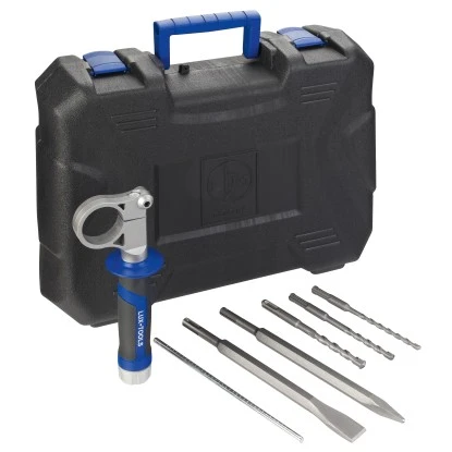 Der robuste LUX-TOOLS Bohrhammer BHA-850 Electronic mit Metallgetriebekopf und einer Leistung von 850 W ist der ideale Helfer bei Bohr-, Schlagbohr- und Meißelarbeiten. Die maximale Bohrleistung in Beton beträgt 26 mm. Dabei sorgt der Softgrip für Komfort und einen sicheren Halt während der Arbeit. Zudem bietet der Bohrhammer Rechts-/ Linkslauf sowie eine variable Drehzahlregulierung und ist durch die Meißelarretierung auch ideal zum Stemmen geeignet. Mit dem SDS-Plus Bohrfutter lassen sich Aufsätze schnell, einfach und vor allem werkzeuglos wechseln. Der Bohrhammer verfügt über eine Stromkabellänge von 3 m.
