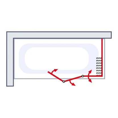 Diese dreiteilige Badewannenfaltwand mit einer feststehenden Seitenwand von Schulte zeichnet sich insbesondere durch ihre dominante Rahmung aus. Außerdem können die einzelnen Elemente der Faltwand für eine optimale Raumnutzung, auch in kleinen Bädern, um 360° gedreht und platzsparend an die Wand gestellt werden.